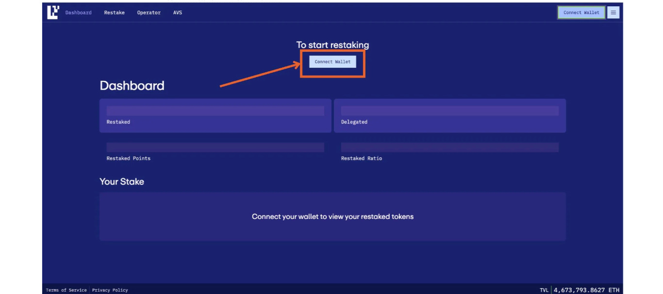 Haz clic en el enlace de acceso de Eigen Layer y conecta tu wallet.