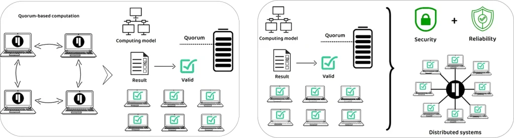 Además, el Quórum de Qubic no requiere un enlace explícito entre los bloques, mitigando así, problemas comunes en otras blockchains, como ataques del 51%.